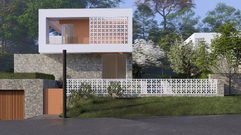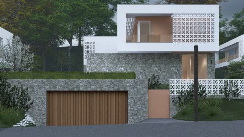 Baumit vakolt homlokzat kőburkolattal kombinálva
