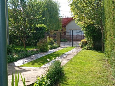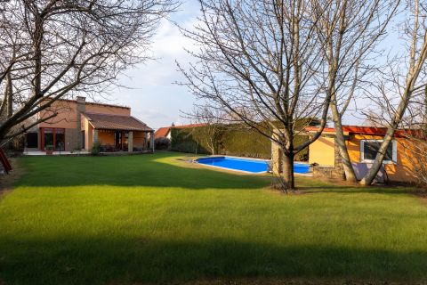 A pázsittal, növényekkel szépen kialakított kertben egy nagy kerti medence található, ami sokat hozzá tud tenni egy ilyen szép természetközeli környezetben a családi-baráti programokhoz.