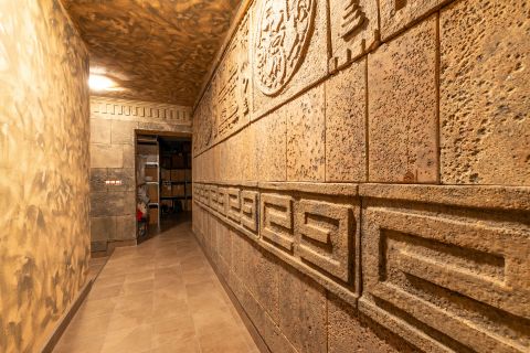 A pincében helyet kapott még egy mosókonyha is, a hozzá tartozó gépészettel. Az egész pince a legapróbb részletekig megtervezett: egyedi fal- és padlóburkolatok, ugyanaz az igényesség és egyediség jellemző rá, mint a ház többi pontjára.