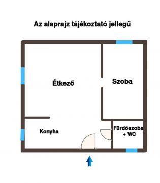 - konyha + étkező, 1 hálószoba, fürdőszoba WC-vel.