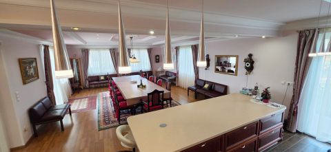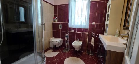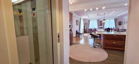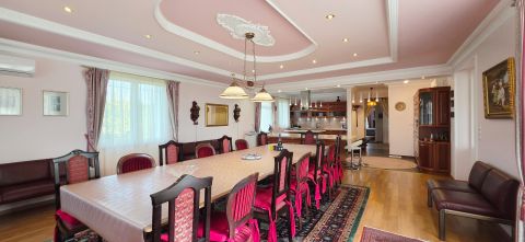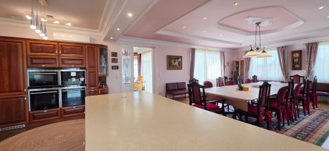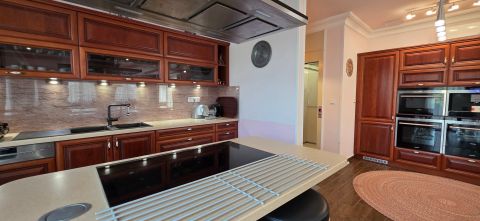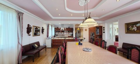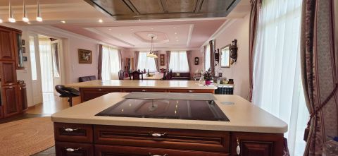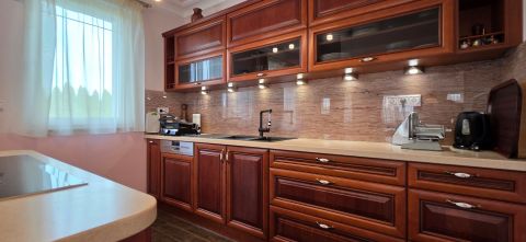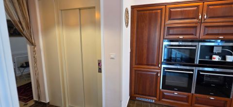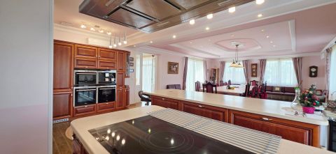 A konyha magasan felszerelt, a sütőn kívül pároló, mikró, kávégép, melegentartó, mosogatógép, dupla méretű főzőlap, elszívó is beépítésre került.