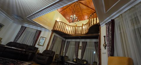 A nappali éke az épített cserépkályhán kívül a déli oldalon található galériázott nyitott födémrész is, mely igazán különlegessé teszi a teret.