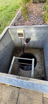 A ház két oldalán két ciszterna biztosítja a vízellátást a kiépített öntözőrendszerhez.