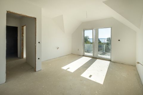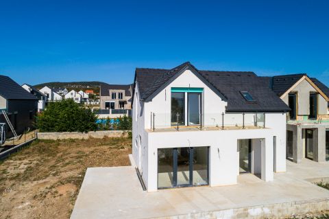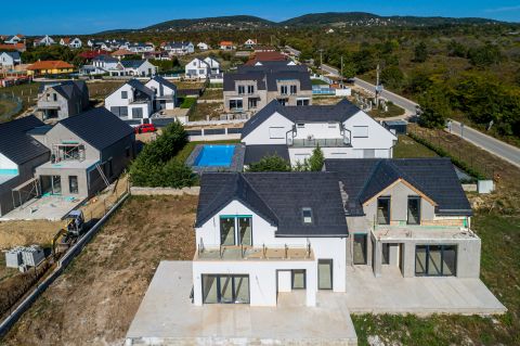 A Balaton északi partján, Balatonfüredtől 10 perc autóútra, BALATONAKALIBAN, megvételre kínálok egy új építésű ÖRÖKPANORÁMÁS ikerfelet.
