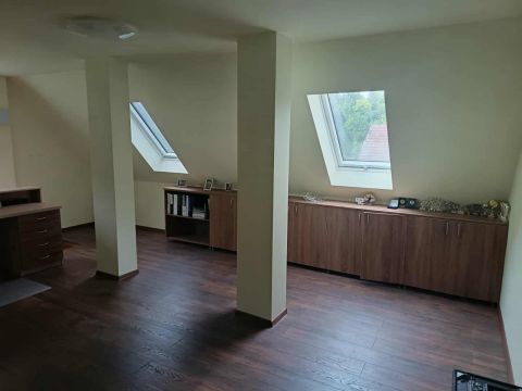 -Csarnok: 105 négyzetméteres, hőszigetelt műanyag nyílászárókkal szerelt, szinte az egész eleje nyitható tolóajtóval. Garázsnak, műhelynek, rendezvényteremnek is alkalmas, új tulajdonosára lesz bízva milyen funkciót talál ki neki .