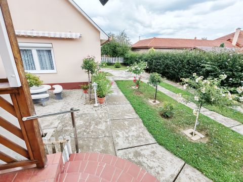 A szép, rendezett udvar igazi ékessége a háznak, ahol bőven jut hely pihenésre, kertészkedésre vagy családi/baráti összejövetelekre.