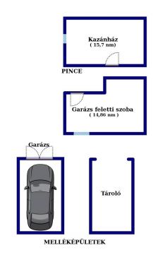 - szoba ( 14,86 nm-garázs feletti tetőtérbeépítés, csak a garázson keresztül közelíthető meg)