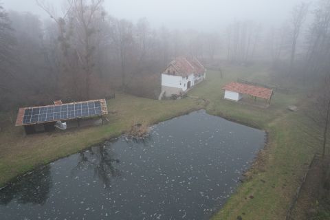 A birtok hangulatát szinte lehetetlen szavakkal visszaadni a fotók és a drónvideó magukért beszélnek: jól látszik, ahogyan az épületek, a kis tó és a környező erdő harmóniában simulnak egymáshoz, egy valódi, eldugott mini-univerzumot létrehozva.