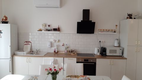 Eladó Angyalföldön, a Béke útról nyíló Rokolya utcában, 364 nm-es telken, egy 3 szintes, 181 nm-es családi ház. Az ingatlan minőségi felújításon esett át, két külön bejáratú lakást alakítottak ki benne. A félszuterén szinten van egy 2 szobás világos lakás. A földszinti lakás belső 2 szintes, nagy nappali + amerikai konyhával,4 hálószobával, 2 fürdőszobával rendelkezik. Fűtése padlófűtés, melyet villanykazán biztosít. Klíma, riasztórendszer, kamerarendszer is kiépítésre került. Az udvarra elektromos kapun keresztül lehet bejutni, ahol egy 2 autó számára kialakított garázs lett felépítve. Az ingatlan tehermentes, gyorsan birtokba vehető.