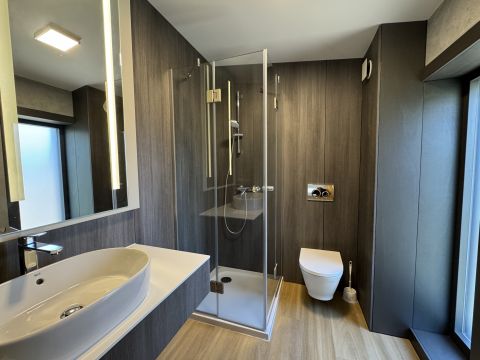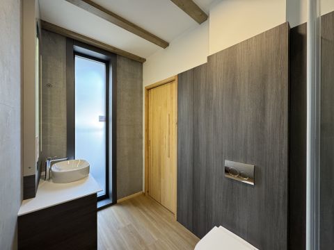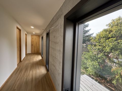 The property combines modern architecture with Japanese-inspired minimalist design and natural materials. The elegant use of wood and exposed concrete, together with large floor-to-ceiling glass surfaces, creates bright, calm and exclusive living spaces.
