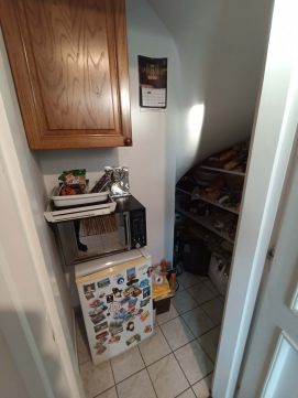 Az földszinten található egy 20 négyzetméteres szoba, fürdőszoba, konyha és egy kis kamra valamint a konyhából lehet kijutni a teraszra.