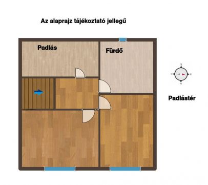 A tetőtéren található egy 11 és egy 10 négyzetméteres szoba, egy fürdőszoba és egy kis padlástér.