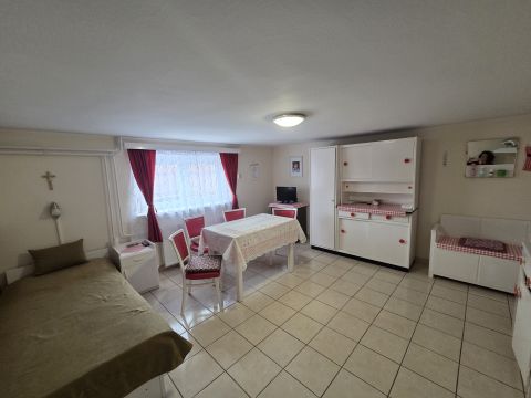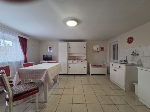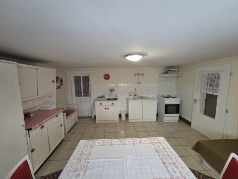 Tágas konyha étkezővel. valamint kiegészítésként egy jó méretű kamra is megtalálható.