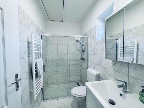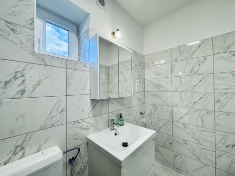 A lakótér 2025-ös felújítása során új, zuhanyzós fürdőszobát alakítottak ki, az összes nyílászárót korszerű, hő- és hangszigetelő műanyagra cserélték, új redőnyökkel és szúnyoghálóval látták el, a szobákba új laminált padló került.