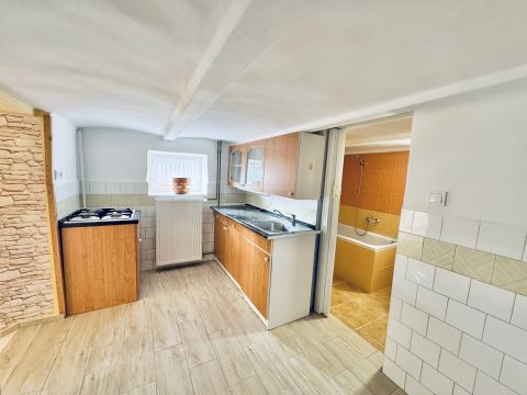 A 27 nm-es szuterénben étkezős konyha, egy linóleum burkolatú szoba és egy kádas fürdőszoba van. A fürdőszoba felújítása 4 éve történt, de nem volt azóta használatban.