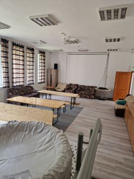Kiskunfélegyháza külterületén közel az autópályához elsősorban munkásszállásnak KIADÓ egy ötszobás tégla építésű magas minőségben kivitelezett hőszigetelt, 240 nm-es több helyiséges közösségi létesítmény. Az akadálymentesített földszintes épület 10 000 nm-es telken helyezkedik el. Az alapfunkciós szobák, kiszolgáló helyiségek, közösségi terek, 20 nm-es pince, kényelmesen kiszolgálnak 30-35 főt.