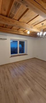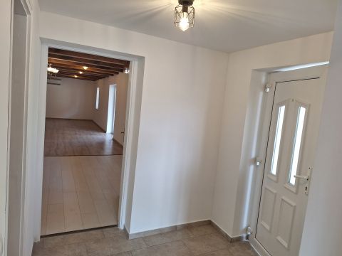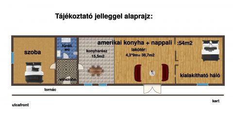 A 80m2-es lakóterű ingatlant 30m2-es, ÉK-i tájolású, a ház teljes hosszában végig futó tornác védi. Az amerikai konyhás, étkezős nappali 54 m2, melyből könnyedén leválasztható még egy külön bejáratú hálószoba, illetve egy kertkapcsolatos dolgozószoba. A konyhai rész 15,5m2, ahol az enteriőrt az új tulajdonos a saját ízlésére alakíthatja ki. Az utcafronti szoba 16 m2, mely laminált padlóval burkolt. A vadonatúj fürdőszobában kád szolgálja a kényelmet, itt kapott helyet az illemhely is.