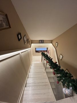 -az ingatlan belső tere világos, átgondoltan megtervezett és meleg hangulatot árasztó ,igényesen kivitelezett beépített bútorokkal