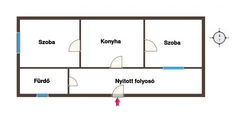 A ház vegyes falazatú, teljeskörűen felújítandó, áll ~ 2 szoba, konyha - étkező, fürdőszoba, nyitott folyosó helyiségekből.