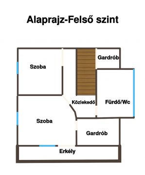 Alsó szint: nappali,konyha,étkező, fürdő, külön WC, közvetlen kertkapcsolat nagy terasszal