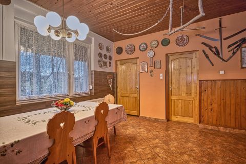 A kialakított fedett terasz alkalmas, mind családi, mind baráti összejövetelek színhelyének, a kert locsolása fúrt kúttal biztosított.