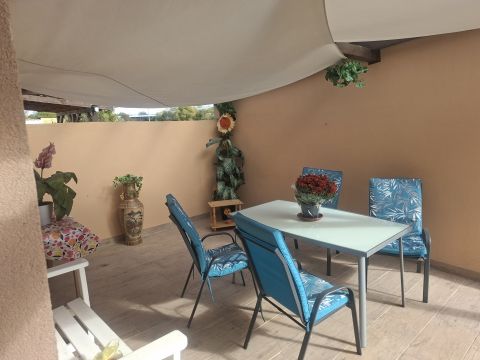 A nappaliból hangulatos hátsó teraszra lehet kimenni, ahonnan az udvarra látunk.