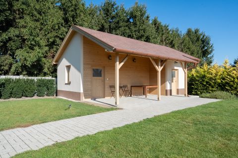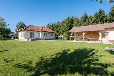 Nem mindennapi extra, hogy a telek hátsó részén egy magas műszaki tartalmú 33 m2-es pihenőház/szerszámtároló is található.