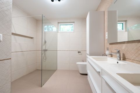 Kiváló hőszigetelésű, hiszen a külső falszerkezetben található 15 cm kőzetgyapot egészül ki további 15 cm polisztirol homlokzati szigeteléssel. A padlóban 15 cm grafitos EPS, a födémen 30 cm kőzetgyapot hőszigetelés van.