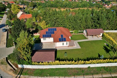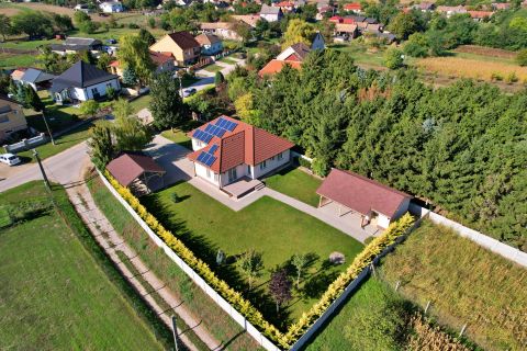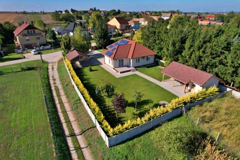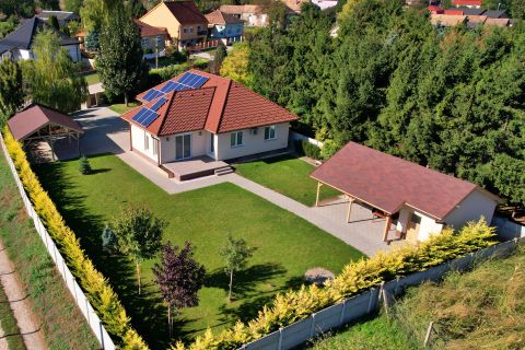 A ház 2022-ben épült, könnyűszerkezetes építési móddal. 121 m2 alapterületű, világos színek, szép burkolatok, minőségi kivitelezés jellemzi.