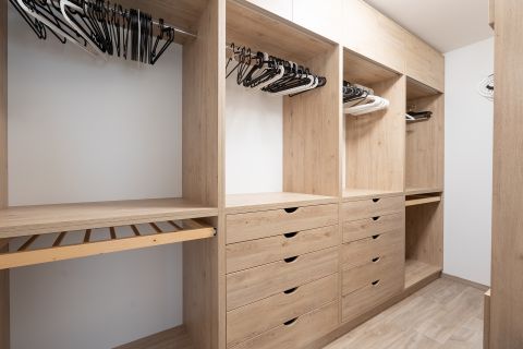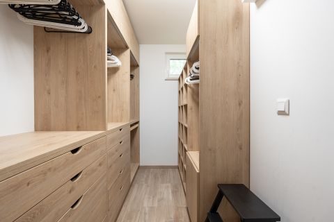 Ha az előszobát elhagyva jobbra fordulunk, akkor a nappali-konyha-étkezőbe jutunk, mely teraszkapcsolattal is rendelkezik. A konyhához egy praktikus kamra is kapcsolódik. Az épület ezen részén még egy hálószobát, egy gardróbszobát és egy gépész/háztartási helyiséget alakítottak ki.