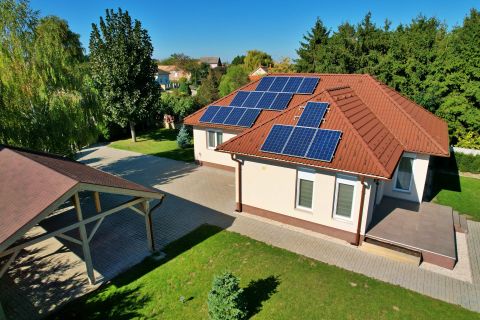 A tetőn 16 db napelem panellel egy összesen 4,5 kW-os rendszert telepítettek, Huawei inverterrel.