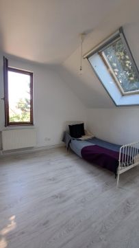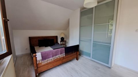 A tetőtérben (52 nm+terasz) három külön nyíló háló, egy WC, egy fürdő és egy 7,5 nm-es, fedett erkély kapott helyet. Az utca felőli szobák ablakából gyönyörű panoráma nyílik a Pilisi hegyekre. A teraszok mindenhol WPC burkolatot kaptak most nyáron.