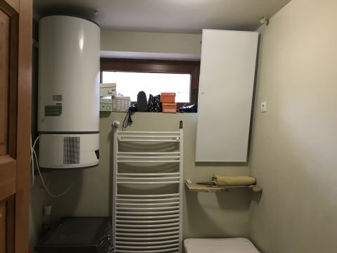 A fűtést 3 db H tarifás hőszivattyú biztosítja, fa tüzelésű kályha is van. Gázt csak főzésre használják.