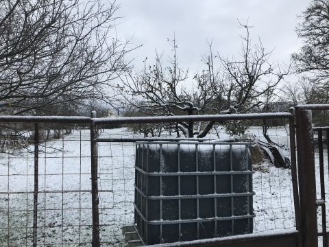 A kertben kútról üzemeltethető öntözőrendszer van kiépítve.