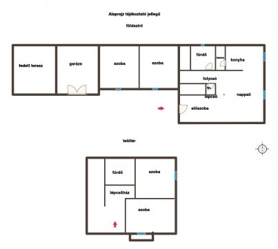 Felső szinten 2 db szoba, fürdő wc-vel található.A szintek közt lépcsővel lehet feljutni.