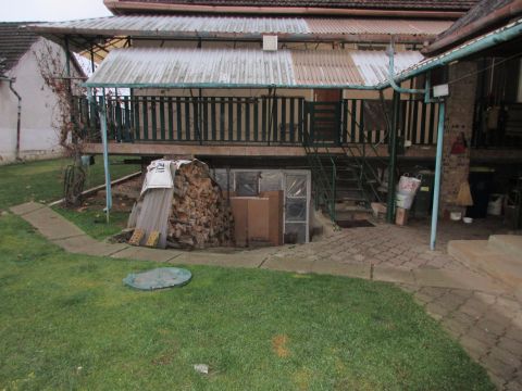 A lakóépülethez kapcsolódik egy nagy fedett terasz, illetve kb. a fele alatt pince.