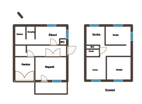 Nappali, tágas étkezőkonyha, 4 hálószoba, garázs, 3 tároló alkotják a helyiségeit.