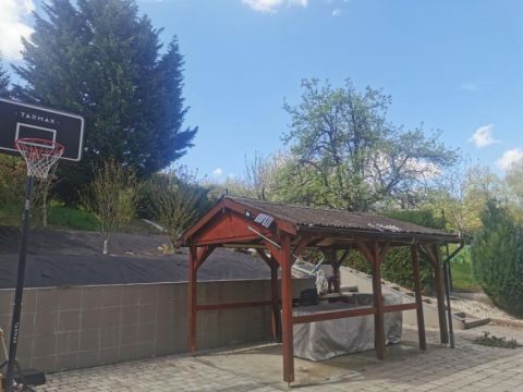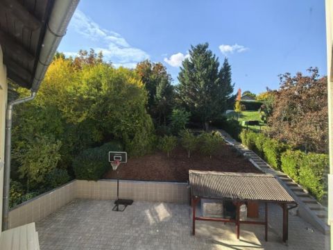 Telek és környezet: A kb. 1000 m²-es, parkosított kert intim, jól használható, öntözőrendszerrel ellátott. A panoráma és a zöld környezet különleges hangulatot ad az ingatlannak, miközben a város könnyen elérhető. A teraszon kialakított szaletli ideális családi és baráti összejövetelekhez.