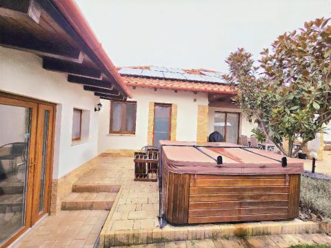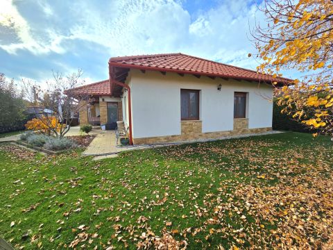 A gondozott, parkosított kert valódi családi életteret és megérdemelt kényelmet kínál: automata öntözőrendszer, robotfűnyíró, jakuzzi, szauna és gyermekjátszótér szolgálja a mindennapi kikapcsolódást. A telken külön álló, 33,5 m²-es, fűtött, téglából épült garázs is található, elektromos szekcionált kapuval és kézmosóval, amely további funkcionalitást biztosít.