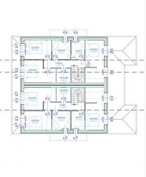 emeleten: 3 szoba, fürdő+wc, házt helyiség, gardrób, közlekedő