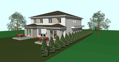 Műszaki paraméterek: teherhordó falak 30-as Porotherm téglából a válaszfalak 10-es téglából készülnek a külső szigetelés 15 cm.