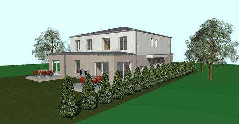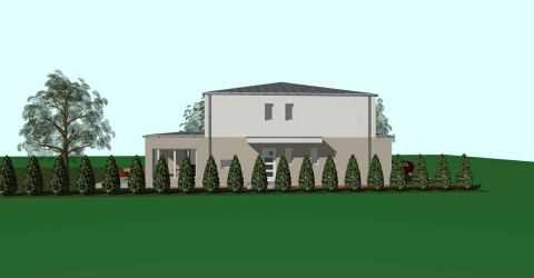 Kialakítása földszinten : garázs 25,21m2, szoba, zuhanyzó+wc, kamra, konyha+étkező, nappali, tágas terasz