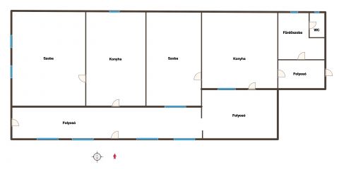 Eladó egy 97 m²-es, tégla alapra épült, vályog falazatú családi ház 718 m²-es saroktelken. A cserépfedésű ingatlan stabil szerkezetű, praktikus elrendezésű: 2 szoba, 2 konyha és egy nagy, tágas folyosó biztosít kényelmes életteret.