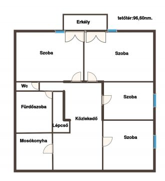 Emeleten 4 hálószoba, fürdő, külön WC, mosókonyha