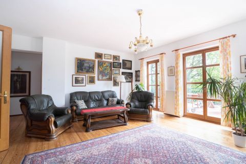 Ez a különleges adottságú villa Solymár természetvédelmi területének közvetlen szomszédságában található, intim, parkosított, 1050 m²-es telken.