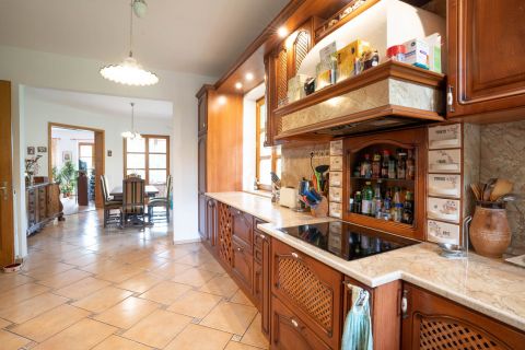 A ház 2001-ben, saját részre épült, masszív 50 cm-es falazattal. Egyedi gyártású fa nyílászárók korszerű, dupla üvegezéssel (2 éve cserélve), padlófűtés a hidegburkolatos helyiségekben, cseresznyefa konyhabútor, tölgyfa beltéri ajtók, klímaberendezések.