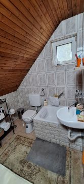 Az emeleten két külön bejáratú szoba található, melyek közül az egyik egy 29 m²-es és DK-i tájolású. A nagyobbik szoba méretéből adódóan igény szerint akár könnyen két külön szobává is alakítható. Ezen a szinten helyezkedik el a második fürdőszoba WC-vel, valamint egy zárható padlástér, amely praktikus tárolási lehetőséget biztosít.