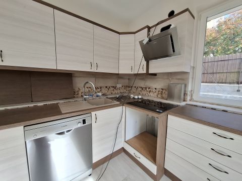 - Autó: automata elektromos kapus 1 állású, kerámiaburkolatos garázs + 2 térburkolatos kocsibeálló