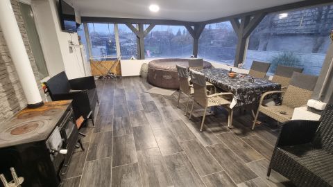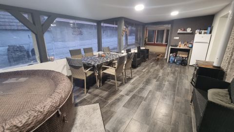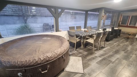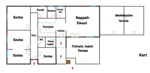 Nappali + 4 szobás, de jelenleg két szoba egybe van nyitva. Két fürdőszobával, és külön WC helyiséggel, kamrával is rendelkezik, a kertben melléképületben kamra, és tároló helyiség is rendelkezésre áll, de akár több tároló helyiség is kialakítható még. A locsolást ásott kút segíti, fedett, fűthető teraszán a jakuzzi télen-nyáron használható.