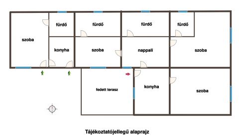 nappali, 4 szoba, 4 fürdőszoba, 2 konyha, fedett terasz